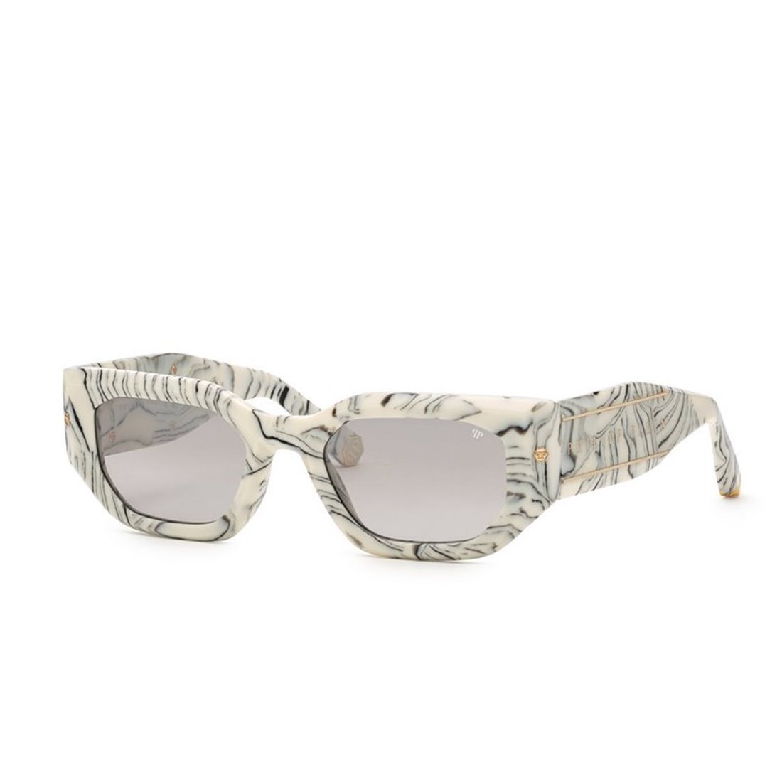 Philipp Plein SPP066M 09YL || Montatura: MARMORIZED IVORY / Lenti: SMOKE/DEG.MIRROR SILVER